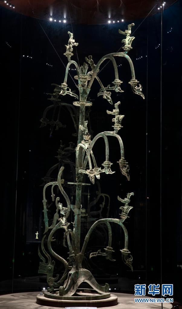 这是在位于四川省广汉市的三星堆博物馆拍摄的1986年出土于三星堆2号“祭祀坑”的青铜神树(3月17日摄)。新华社记者沈伯韩摄