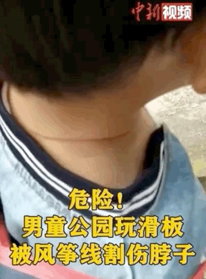 被其他小朋友的风筝线割伤脖子