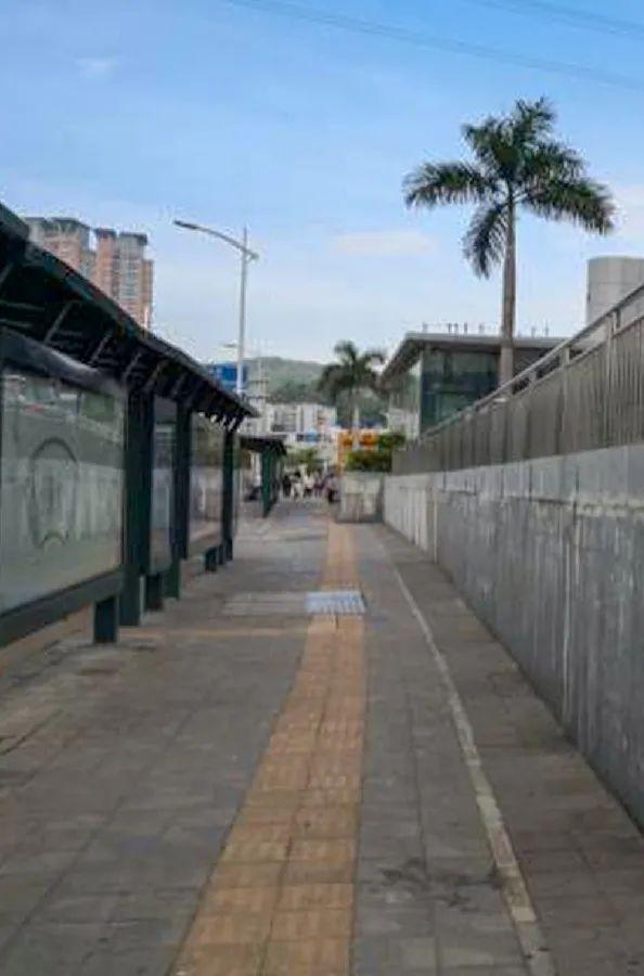 因建成时间较早,银湖汽车站前公交站存在人行道老旧且缺少风雨连廊、挡土墙返碱严重、墙面出现裂缝且破损明显等问题。