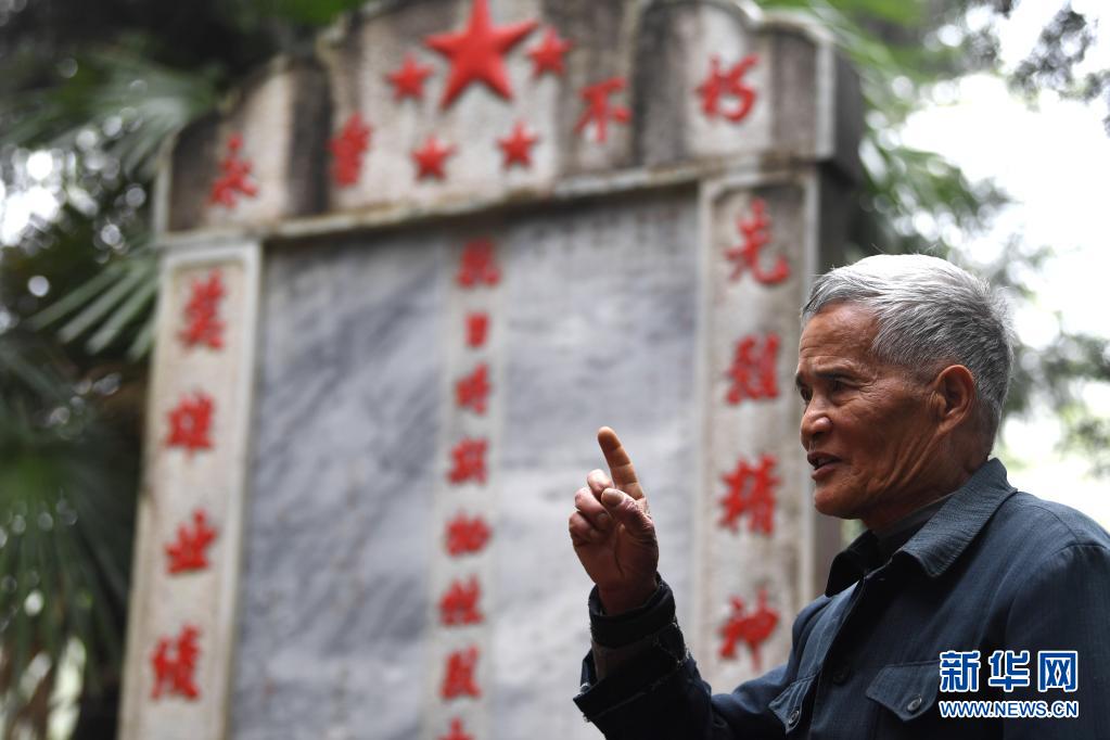 4月1日,叶观山向前来祭奠的义安区钟鸣镇金榔中心小学学生介绍烈士的英雄事迹。