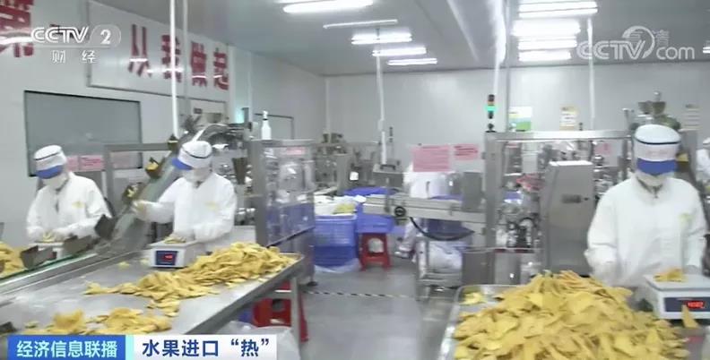 受益于芒果量价变化的,还有果干加工企业。在凭祥最大的芒果加工厂,一条条生产线上,新鲜的芒果干正在被装袋装箱。记者在企业刚刚公布的财报中看到,去年果干产品贡献了全公司8.27%的营收,同比增长86.54%,是增幅最大的品类。企业负责人告诉记者,他们如今每天都保持在二三十吨的产能。