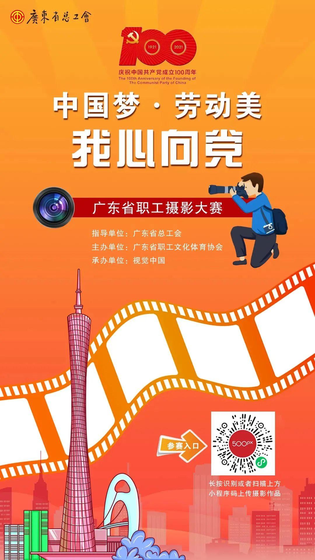 为喜迎中国共产党成立100周年,充分展示中国共产党百年光辉历程、伟大成就和宝贵经验,反映在中国共产党领导下新中国发生的举世瞩目的巨大变化,激励全省广大职工更加紧密地团结在以习近平同志为核心的党中央周围,向第二个百年奋斗目标进军,广东省职工文化体育协会将举办“中国梦·劳动美——我心向党”全省职工摄影展。