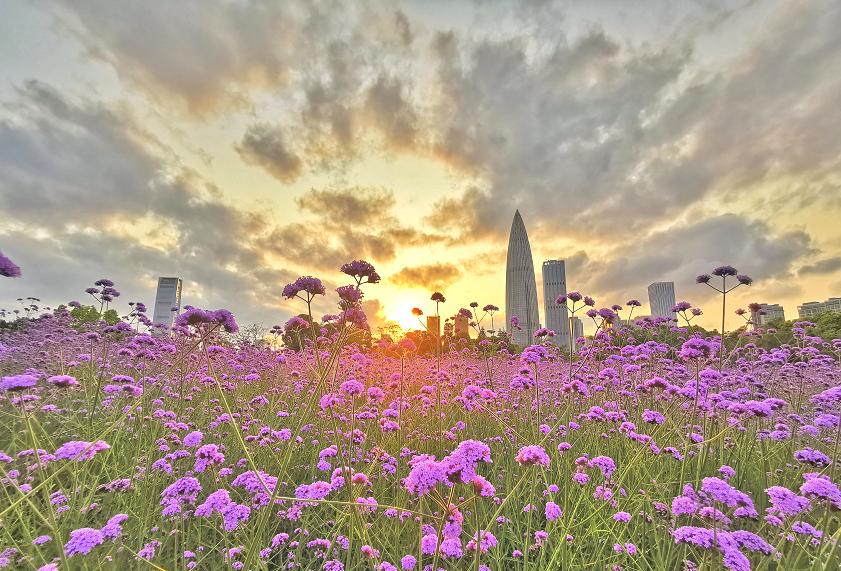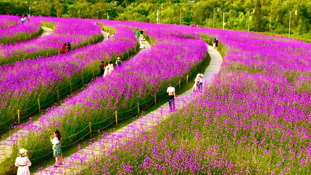 春意盎然,面朝深圳湾,流花山15000㎡花海,在11月迎风绽放。碧海蓝天间,淡紫色的马鞭草星星点点地连成一片浪漫花海,置身其中仿佛穿越到了普罗旺斯。一朵朵盛放的马鞭草,随风摇曳着曼妙的身姿,空气中也弥漫着淡淡的、令人无法抗拒的柠檬味芳香。