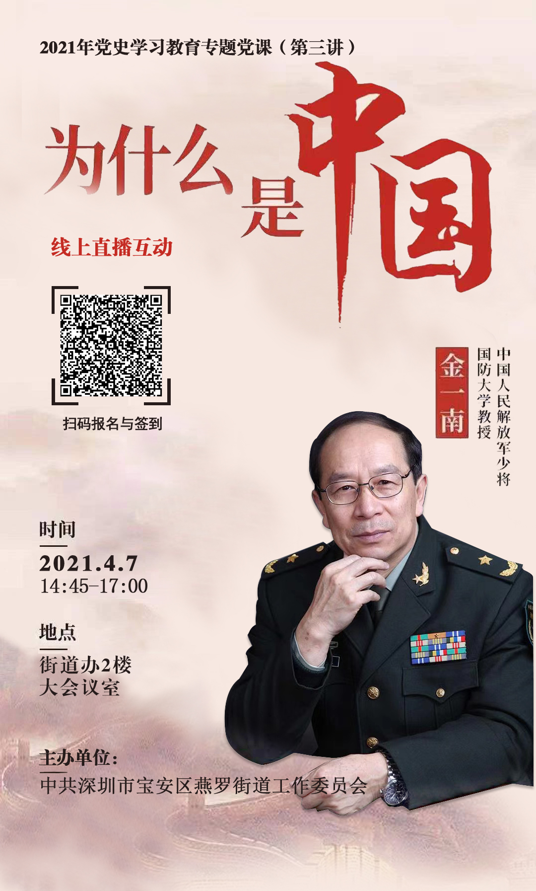 4月7日下午,燕罗街道举行党史学习教育专题讲座,连线党史学习教育中央宣讲团成员、国防大学教授、中国人民解放军少将金一南作主题为“为什么是中国”党史学习教育专题讲座。这也是燕罗街道党史学习教育专题第三讲。