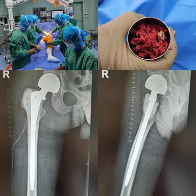 由于患者的病灶局限于股骨颈及股骨近端,专家决定为患者实施双动头人工股骨头肿瘤假体置换,而非全髋关节置换,这样做的意义是保留髋臼的软骨组织,因为软骨是骨肿瘤突破的天然屏障,保留软骨以阻断肿瘤细胞向髋臼侵犯。