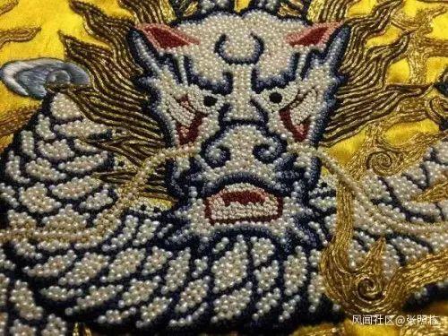 陈英华介绍称,米珠龙袍上有八条神态各异、威风禀禀的龙,龙身缀满40000颗小珍珠做的龙鳞。而这40000课珍珠都是陈英华用穿珠绣绣上去的。此外,这件作品还用到了盘金绣、打籽、平绣、传统秀等多种手法制成。