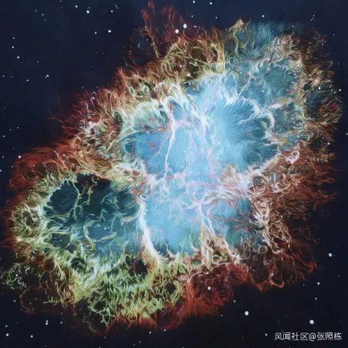 她的第一幅作品是“蟹状星云”。陈英华表示,星云色彩绚丽飘渺,十分难绣,从针法、图案轮廓到丝线颜色,她一遍遍试一遍遍绣,不满意了再拆线重来。