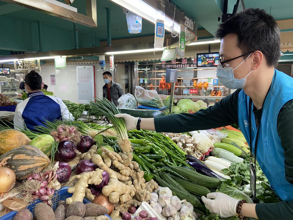 为了摸清深圳“掉色香葱”的情况,深圳市计量质量检测研究院食品快检与核查事业部快检“蓝马甲”也出动了,调查了深圳13家农贸市场,走访了30余个档口,查看蔬菜700余批,最终发现1例香葱表面残留蓝色物质。