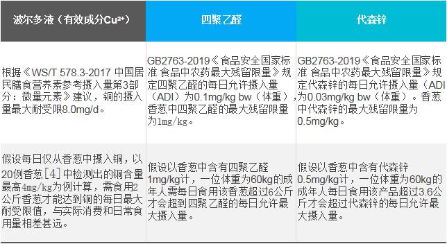根据上表可见,无论是代森锌、波尔多液还是四聚乙醛,每日食用含有以上残留物质相当数量的蔬菜,才可能对身体健康造成影响。