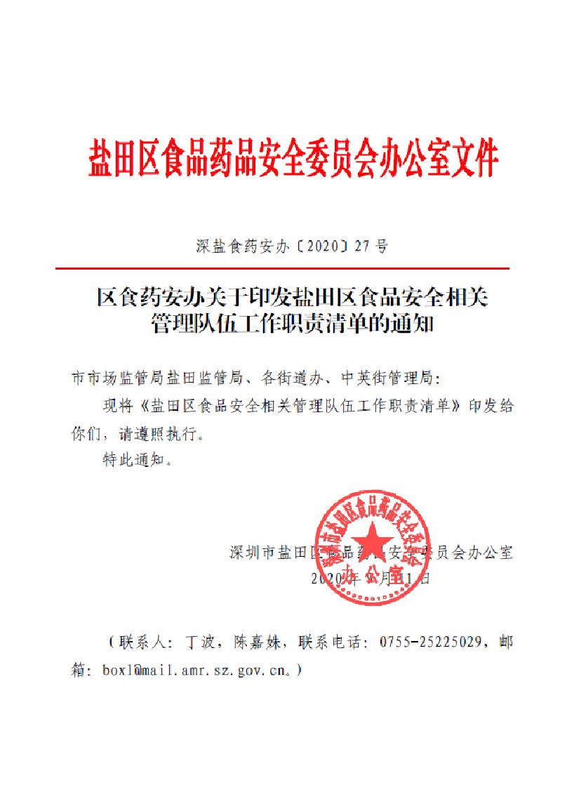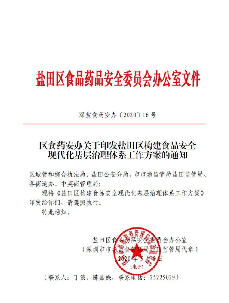 制定印发《盐田区构建食品安全现代化基层治理体系工作方案方案 》(左)《盐田区食品安全相关管理队伍工作职责清单》(右)↓