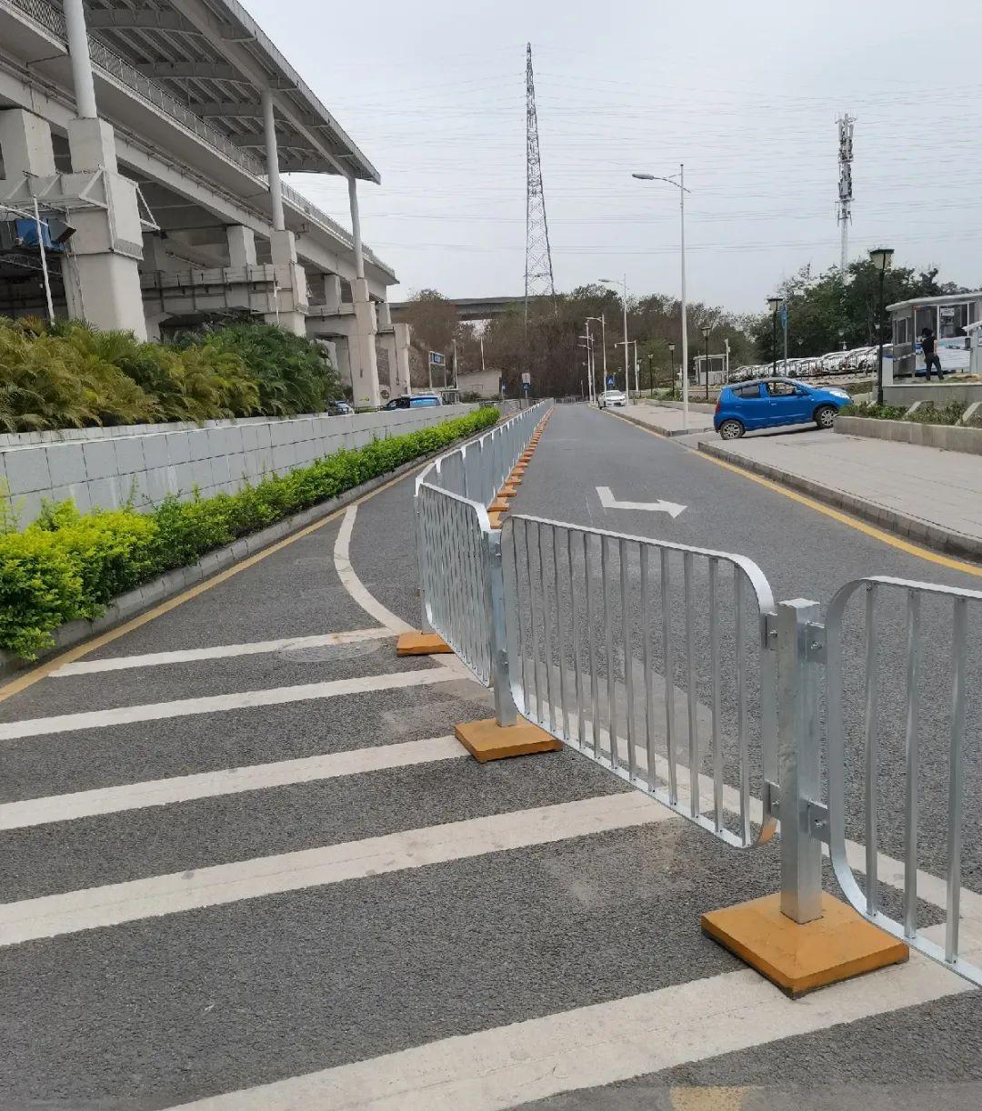 我们利用隔离护栏将原有7米宽的单行道改为 4 米宽单行车道,压缩机动车占用道路违停空间,规范单向行车秩序。