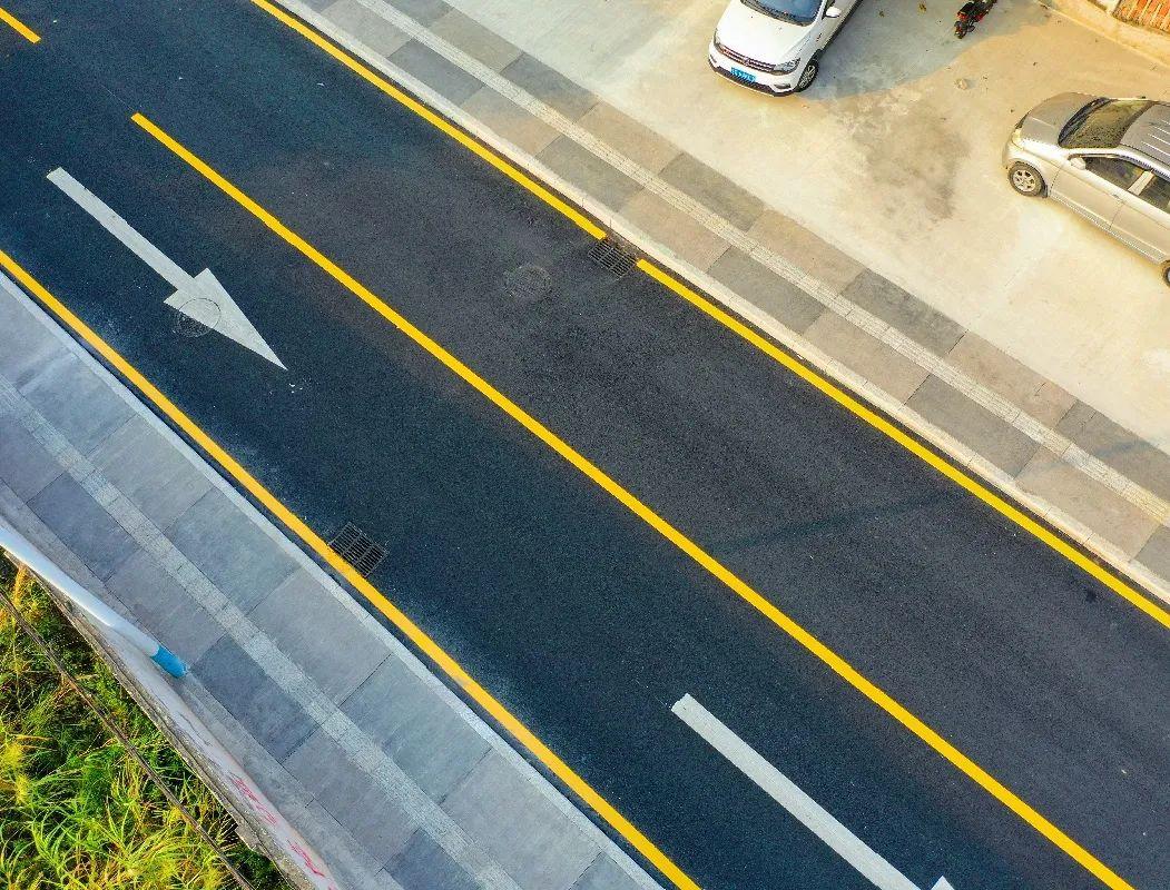 通过全面维修破损混凝土板,并用摊铺沥青混凝土实现“白改黑”,降低行车噪音、提升道路平整度,有效提升道路颜值。
