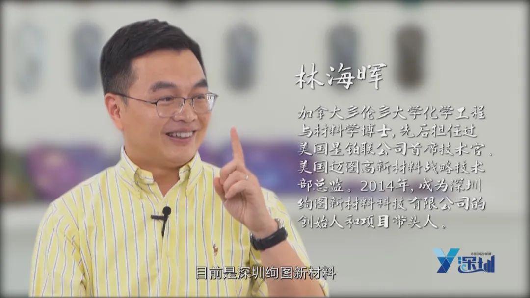 林海晖,深圳绚图新材料科技有限公司的创始人,加拿大多伦多大学化学工程与材料学博士。曾在跨国企业工作12年之久,先后担任过美国星铂联公司首席技术官、美国迈图高新材料战略技术部总监。2014年,林海晖辞去海外高薪职位回国创业。