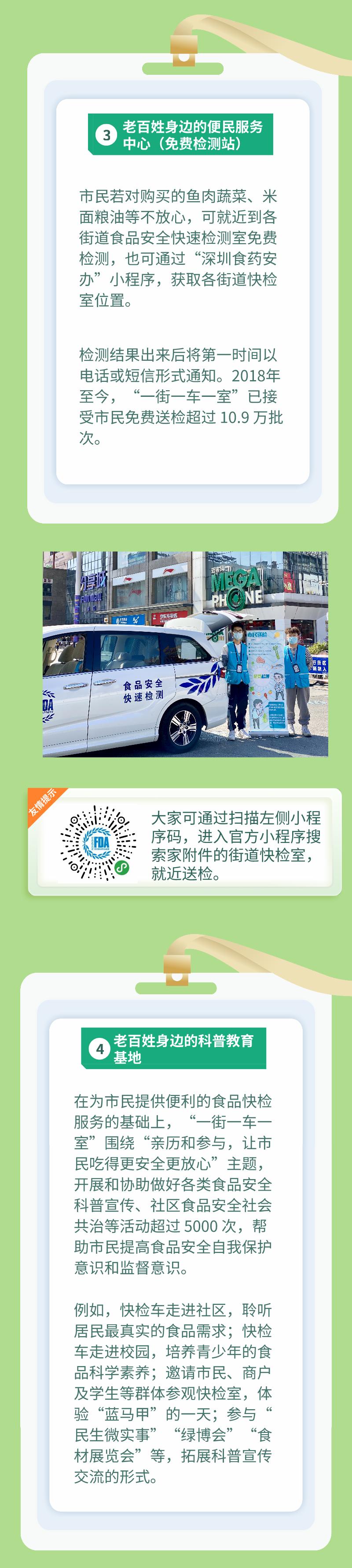 部分街道“一街一车一室”还积极开展“问检于民 你点我检”活动,让市民决定抽什么、检什么,通过积极鼓励公众积极参与食品安全监管,切实保障广大消费者对食品安全的知情权和参与权,使食品安全监管工作更加贴近民生需求。