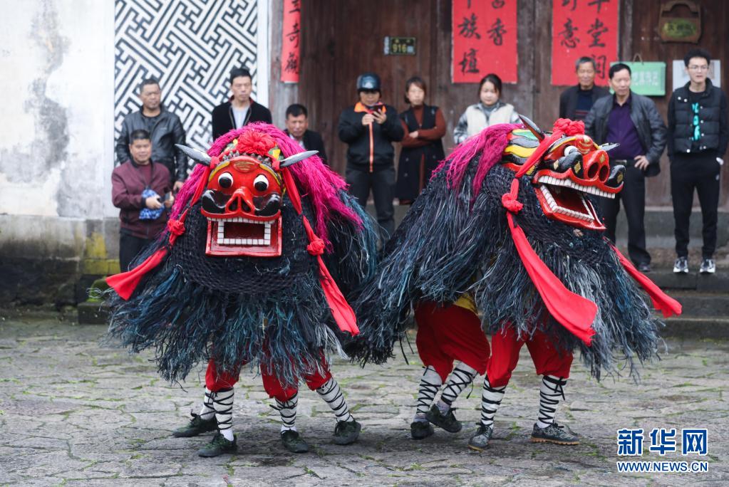 4月14日,人们在“新叶三月三”上观看“硬头狮子”民俗表演。新华社记者徐昱摄