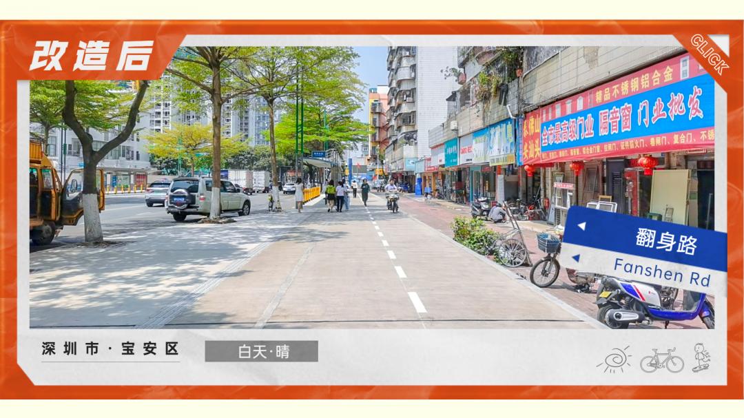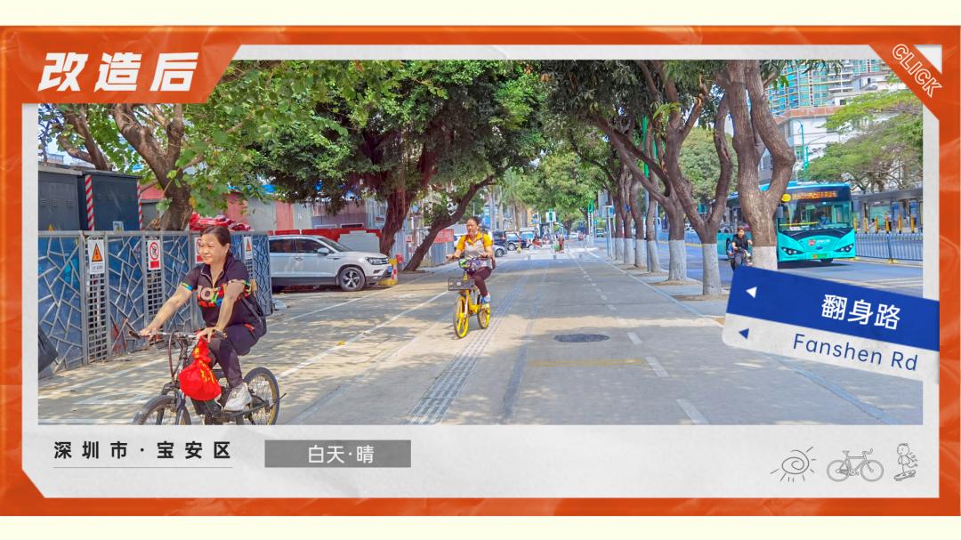 宝安管理局采用全断面混凝土形式,提升非机动车道、人行道等慢行系统设施品质,增加路行空间。