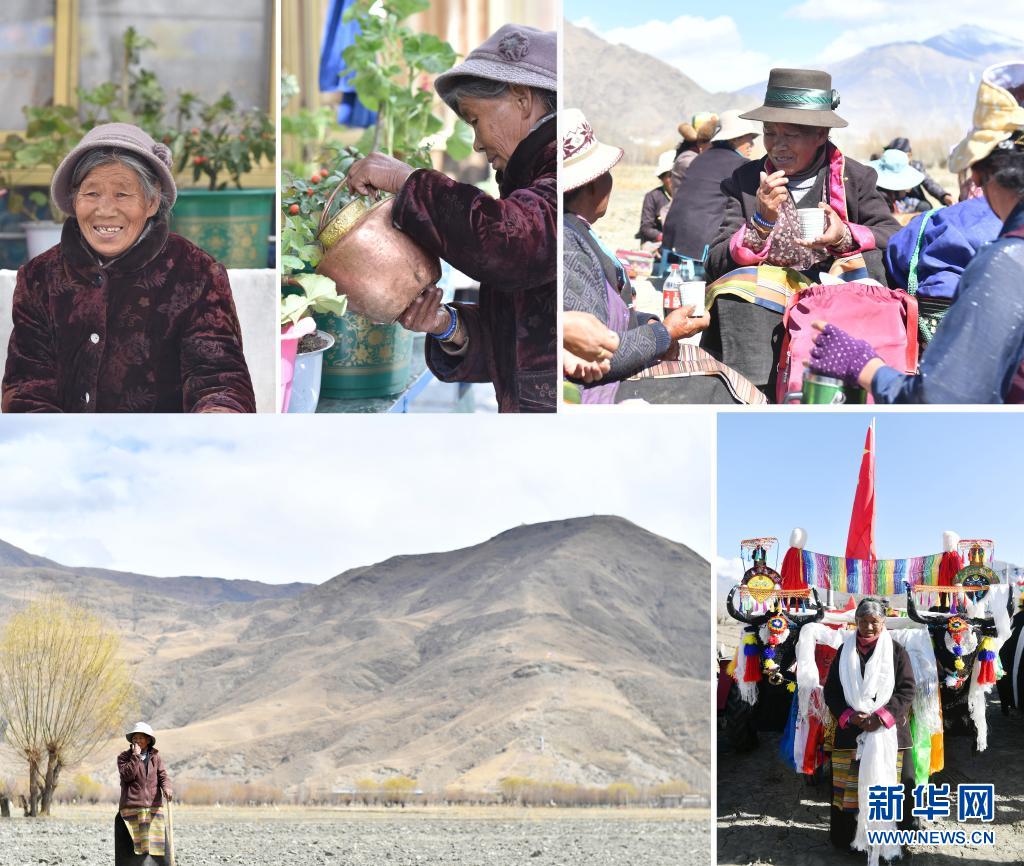 这是一张拼版照片,左上图为:德庆卓玛在山南市乃东区克松社区的家里休息(3月15日摄);中上图:德庆卓玛在山南市乃东区克松社区的家里浇花(3月15日摄);右上图:德庆卓玛参加山南市乃东区克松社区春耕仪式时在田间休息,和乡亲们聊天(3月16日摄);左下图:春耕仪式结束后,德庆卓玛打量自家的田地(3月16日摄);右下:德庆卓玛参加山南市乃东区克松社区的春耕仪式(3月16日摄)。