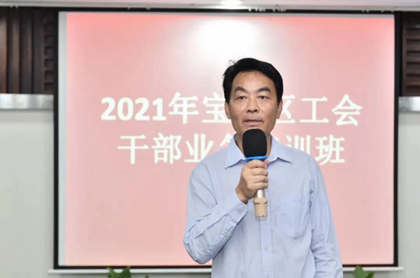 区教育工会专职副主席于正勇发表讲话,他表示,宝安区教育形势蓬勃发展,特别是在过去的一年中,公办教育单位数量增幅明显,基层工会组织建设水平参差不齐,尤其是民转公幼儿园工会。此次培训班以各基层教育工会的组织建设、财务管理等内容为培训主线。要求参加培训的工会主席、干部融会贯通此次培训内容,回去后扎实作好传达贯彻工作。