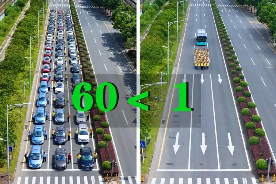 只占用3辆小汽车的道路空间