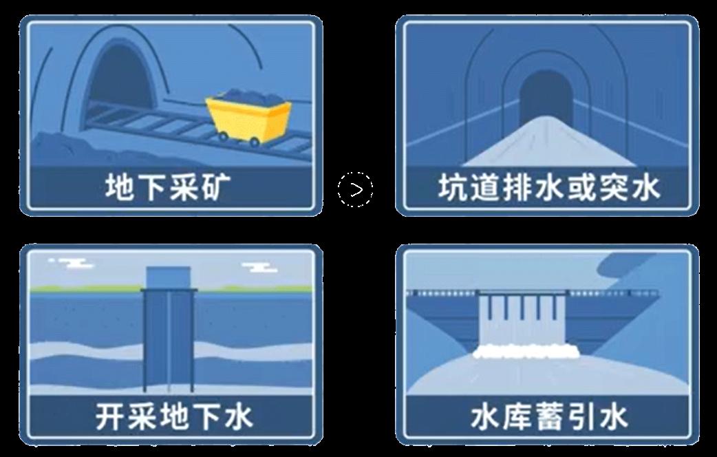 水井、沟渠、池塘、监测孔等水位骤然升、降,水色突然 浑浊,水面冒泡等。