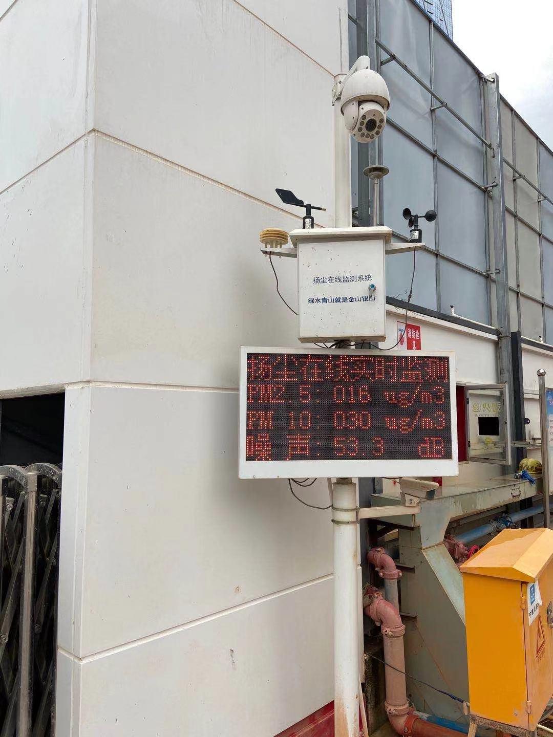 出入口100%安装TSP在线监测设备,主要监测PM2.5、PM10以及噪声值,数据均与住建局、环保局联网互通,项目还采用绿色施工智能管理平台,对扬尘、噪音的数据进行监测,当超过正常值时,系统会自动报警,起到有效防治作用。