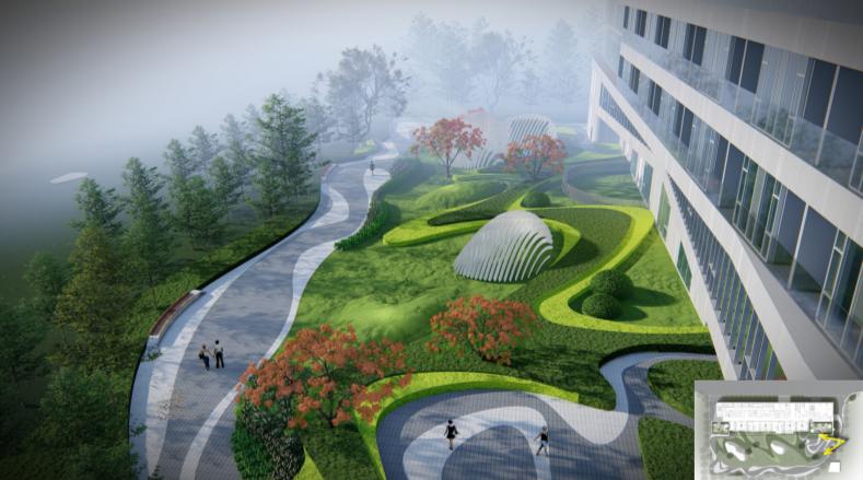自然景观在身体、心理和精神的康复中能够发挥许多积极作用。所以设计中也融入了自然景观,使设计充满了人文主义关怀。