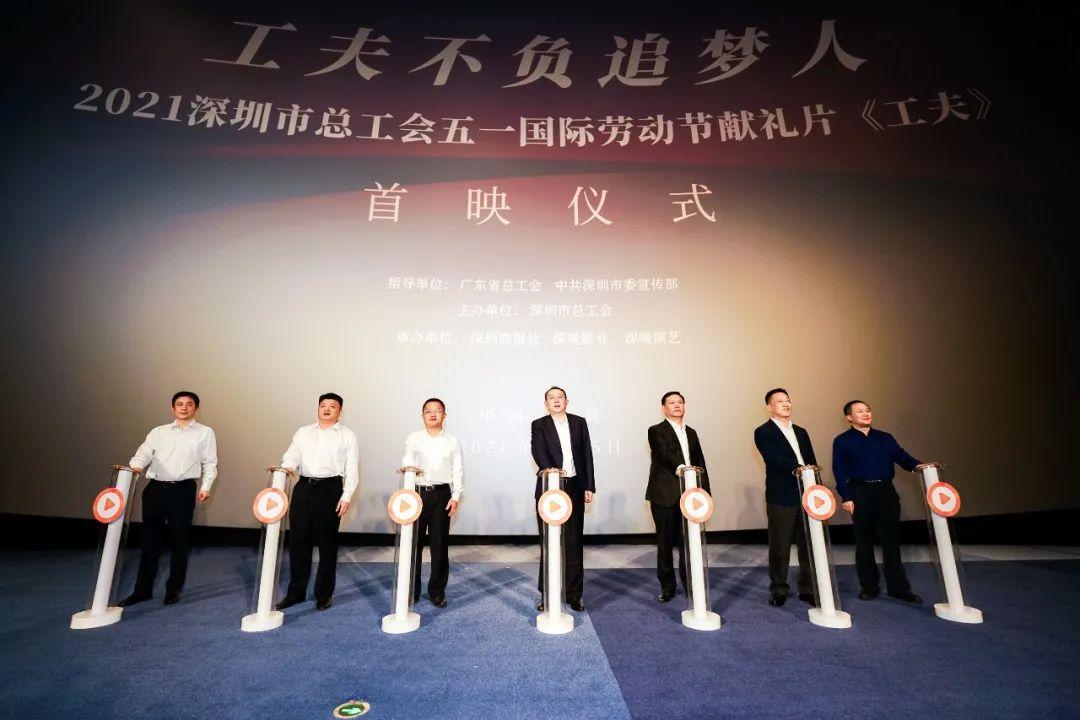4月25日下午,由广东省总工会、中共深圳市委宣传部指导,深圳市总工会全资出品、深圳晚报深晚影业承接的深圳工会“五一”劳动节大型献礼片《工夫》在深圳平安金融中心英皇影城举行首映仪式。