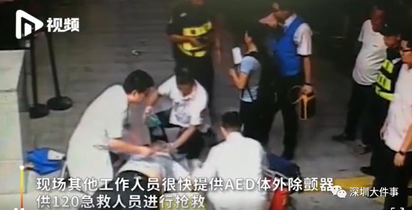 2019年6月18日晚,深圳地铁1号线岗厦站D出入口一名男性市民晕倒。工作人员立即对晕倒市民进行心肺复苏,并提供AED体外除颤器供120急救人员进行抢救。