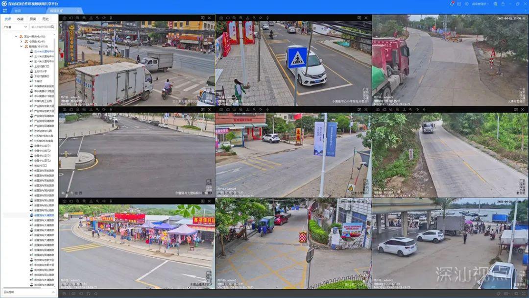 在“因地制宜、按需建设”的基础上,深汕智研院结合深汕合作区智慧城市统一运维的工作机制,积极推进视频数据联网整合、共享应用,打造视频联网共享平台,同步接入已建视频点位数据,实现数据、应用和服务在全区各职能部门内共享,破解了职能部门单独承建带来的运维效率低、共享难度大、应用领域窄的难题。通过这个平台分屏展示的页面,全区各交通要道、边边角角,一目了然。该平台还具有电子地图功能,用户在地图上可以灵活调取各点位监控资源。