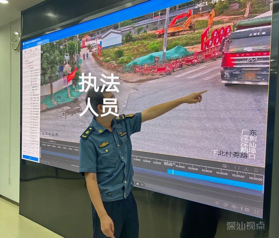▲4月21日,执法人员借助区视频联网共享平台发现疑似超限运输车辆,视频助力查处违规超限泥头车。