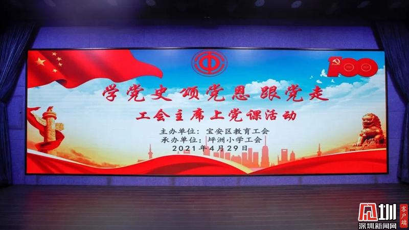 深圳新闻网宝安讯(记者 梁婷婷 通讯员 石媛)为庆祝中国共产党建党100周年,歌颂党的光辉历史和奋斗历程,从光辉历程中吸取精神滋养,从学党史中吸取前进力量,团结动员广大教职工坚定不移听党话、跟党走,以实际行动和优异成绩迎接建党100周年,4月29日下午,区教育工会“学党史颂党恩跟党走”工会主席上党课活动在坪洲小学举办。