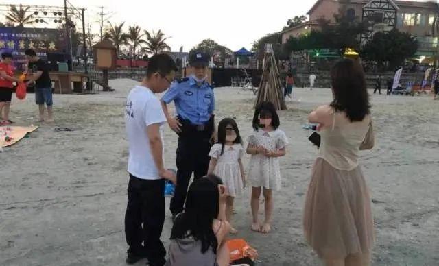 5月1日18时,深汕公安分局小漠派出所民警叶小波带队在南方澳度假区巡逻,执勤中辅警陈泽添在海滩上发现两名约7岁的小女孩在哭泣,神情慌张,旁边没有大人陪伴。陈泽添立即上前询问,原来姐妹二人在景区游玩时不慎与父母走失,且她们只会说其母亲名字。陈泽添第一时间将姐妹二人带到度假区广播室,利用广播查找二人母亲,并安抚姐妹二人情绪。五分钟后姐妹二人的父母听到广播急忙赶往广播室接回小孩。当时海滩上游客众多,且海边风浪大,幸亏巡逻警力及时发现走失女孩,避免了危害事故的发生。