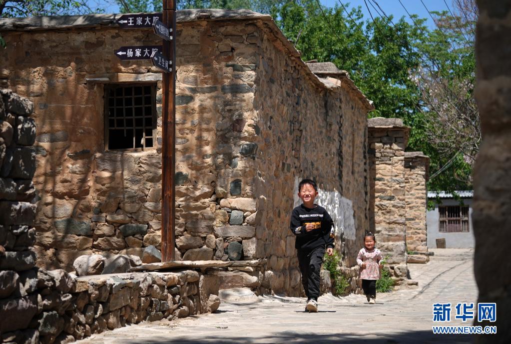 5月5日,小朋友在临城县驾游村玩耍。新华社记者 骆学峰 摄