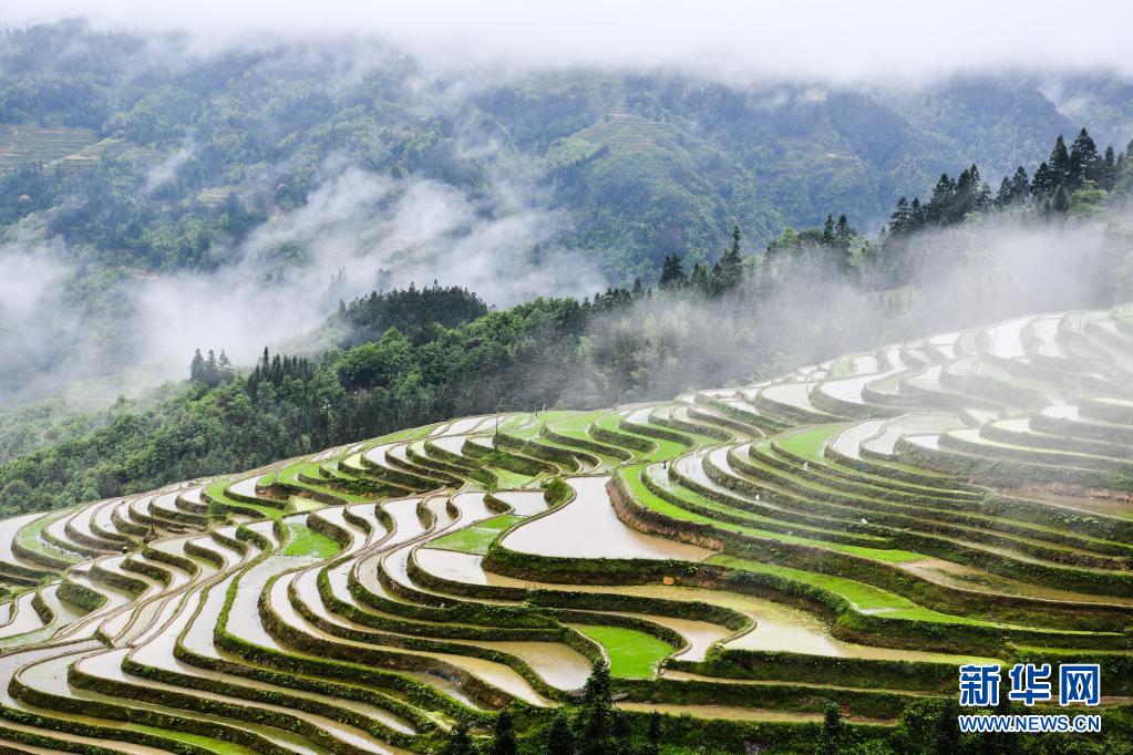 这是5月3日拍摄的贵州省从江县加榜梯田。