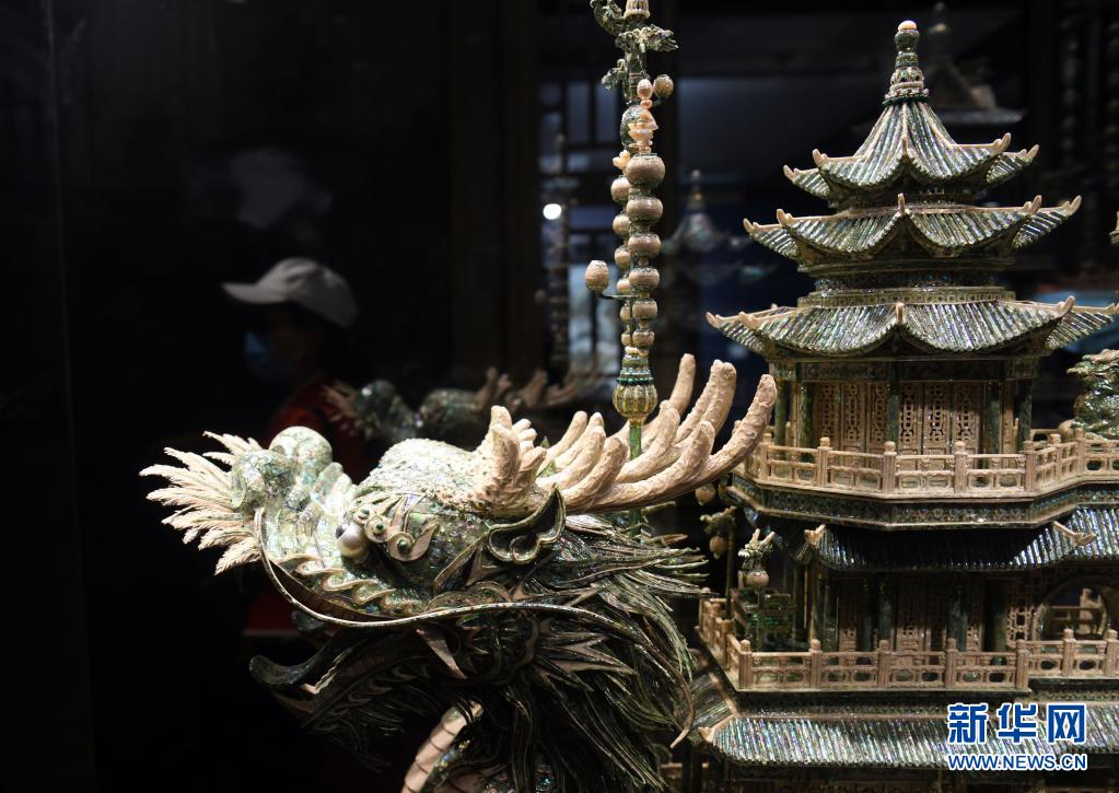 这是5月7日在北京恭王府博物馆拍摄的贝雕作品《龙船》。新华社记者 金良快 摄