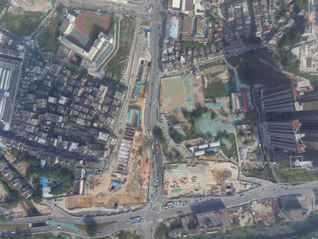 坪山围站施工场地原为坪山区主要商业街道,多为密布的3~6层民自建房,累计需拆迁房屋111栋,面积共计73200平方米。