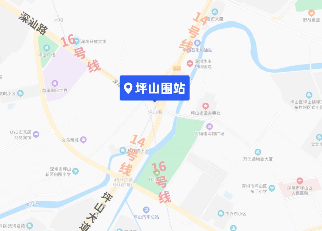 坪山围站位于坪山新城中心片区,是嵌在地铁16号线与14号线交点的一颗“明珠”✨