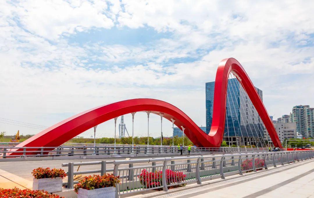 本次开通的听海前海桥长 110 米,主跨跨径 70 米,造型设计别致美观