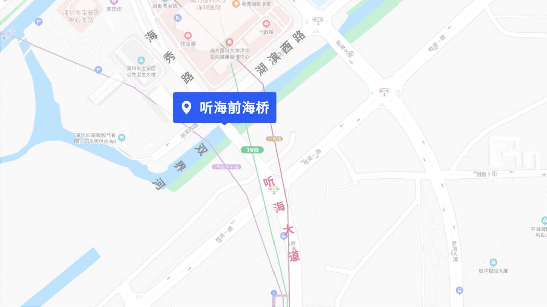 听海大道北接宝安区湖滨西路-海秀路路口,南至妈湾大道,总长约5.4公里。