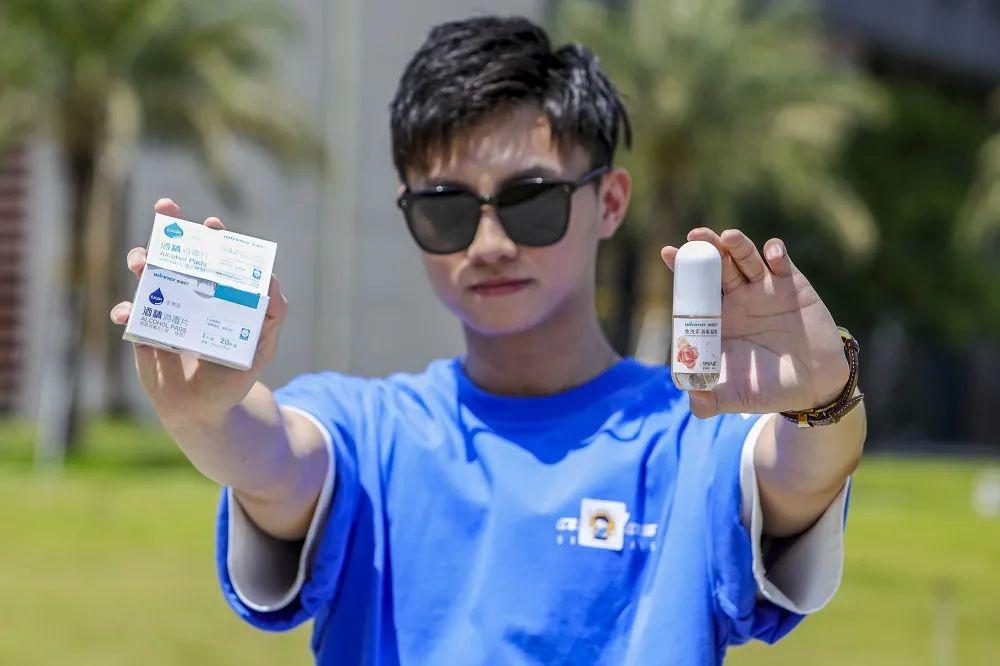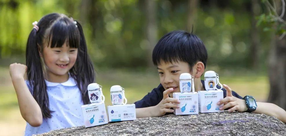 5万份“真香手消包”,包括2万支精油手消毒凝胶(香型随机)、2万盒儿童手消毒凝胶、1万盒酒精消毒棉片。