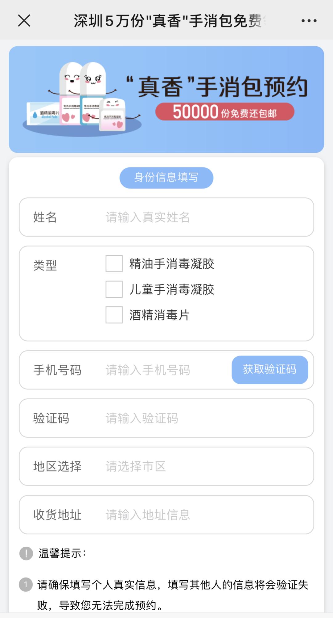 1.本活动所填写提交的信息,仅用于真香手消包领取资格抽签及中签后的配送;