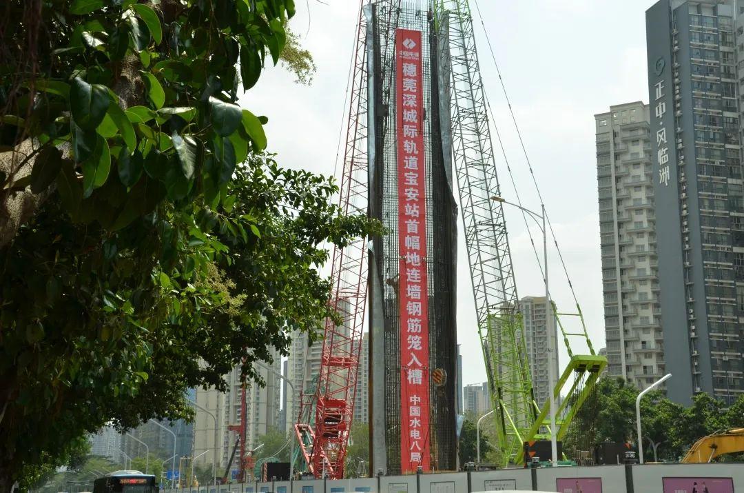 穗莞深城际宝安站正在进行第13幅地连墙混凝土浇筑,与此同时,下一幅地连墙也已进入铣槽施工阶段,并计划于年内正式进入主体结构施工阶段,预计2024年底建成。