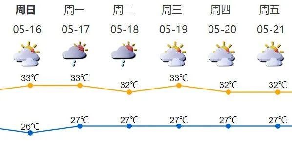 # 16日多云间晴天,局地有短时阵雨或雷阵雨,气温27-32℃