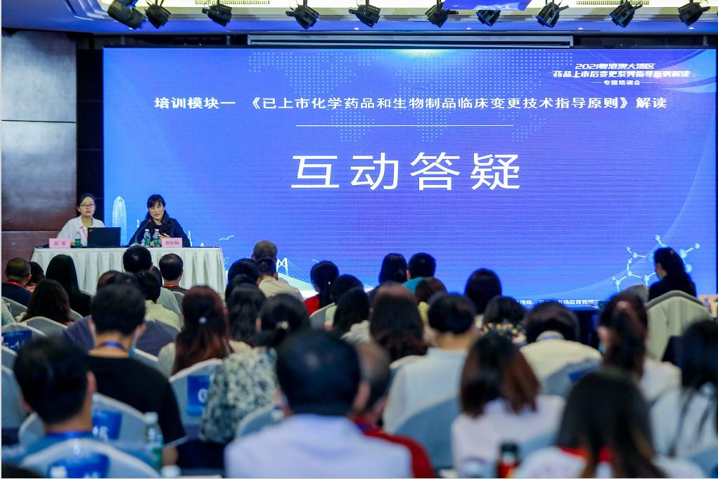 随后,来自深圳、广州、东莞等地的多家大湾区药企代表在互动答疑的环节中就企业在药品生产的实操过程中面临的有关药品上市后变更的问题进行了深入的现场交流。
