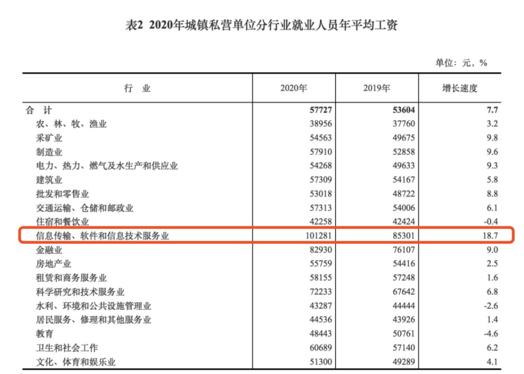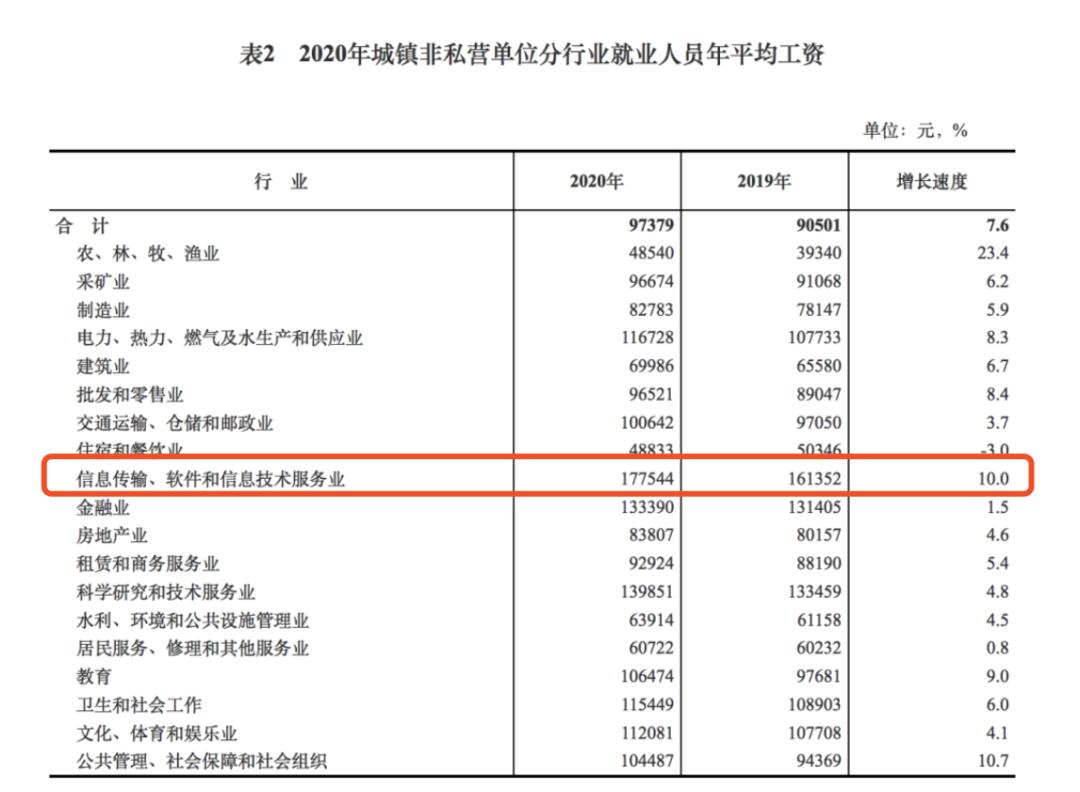 IT行业年平均工资最高