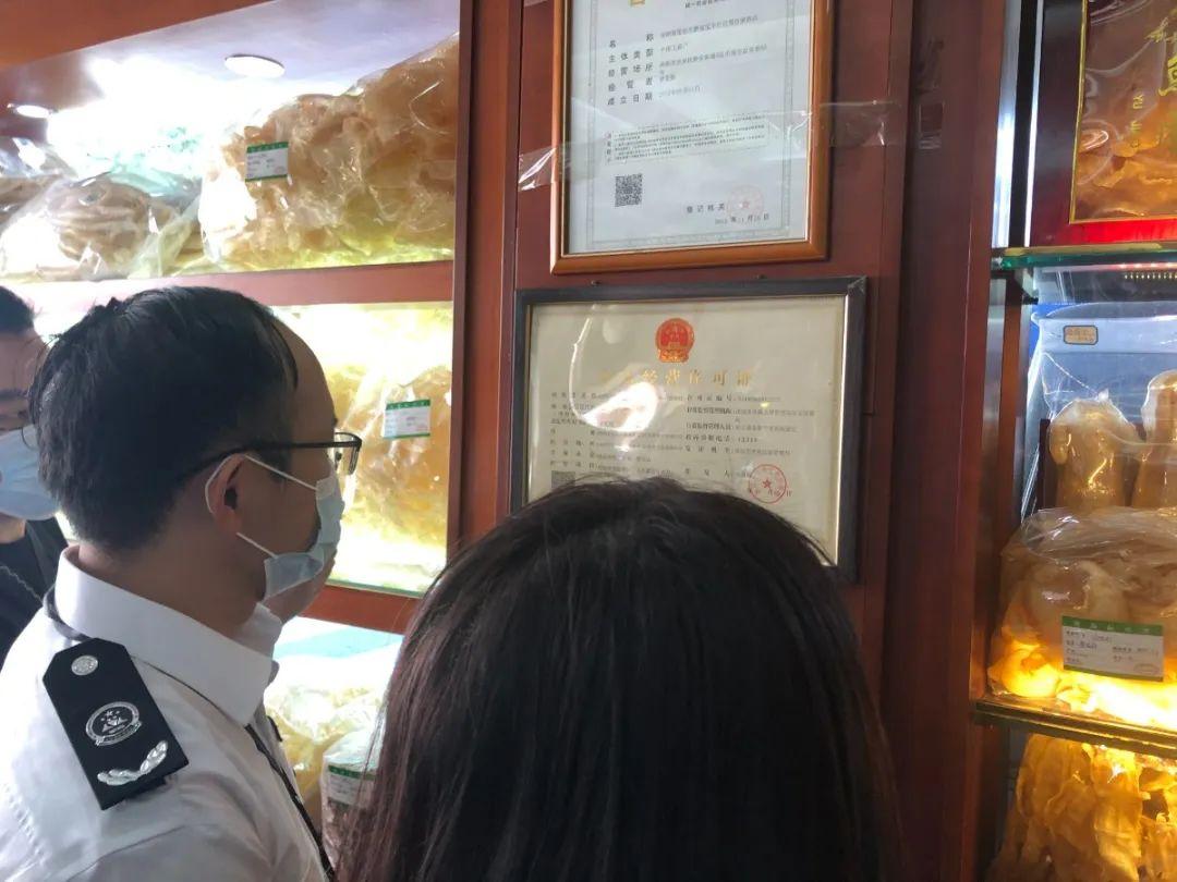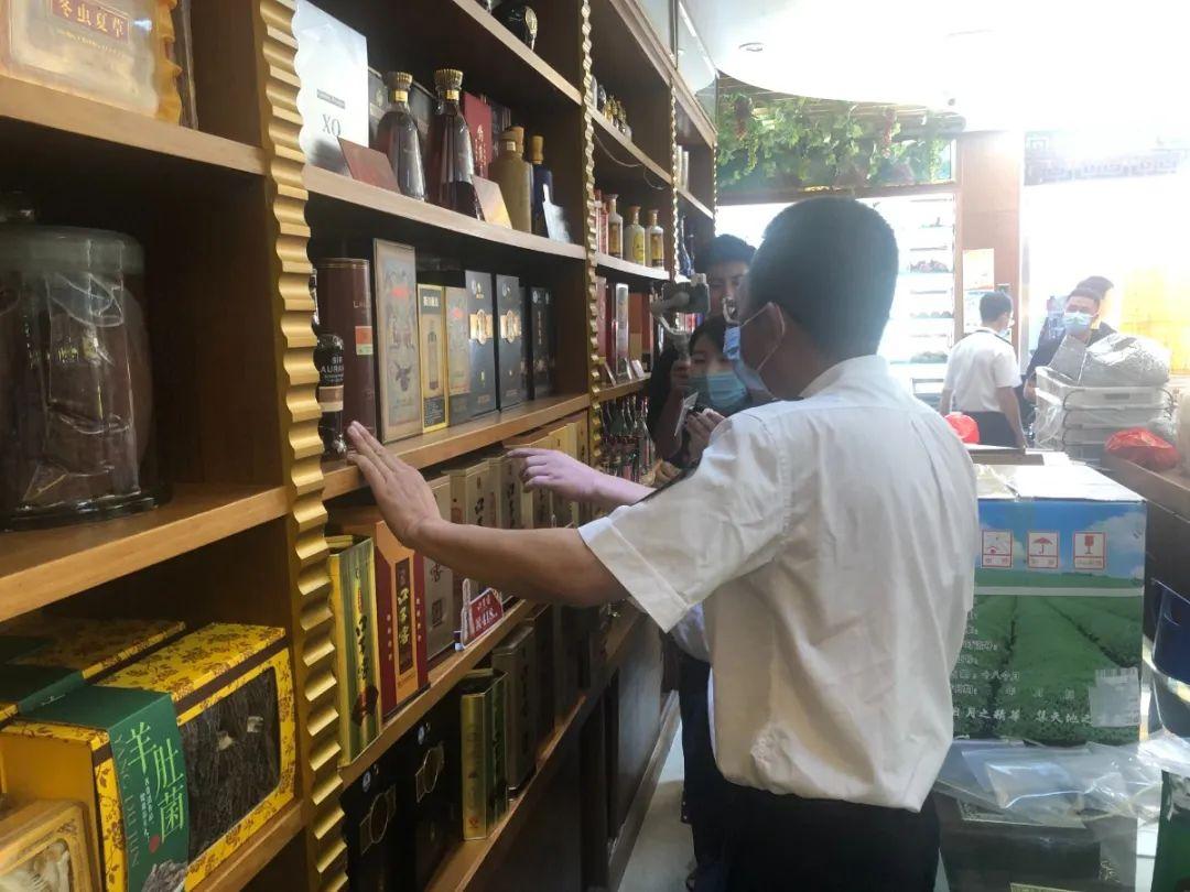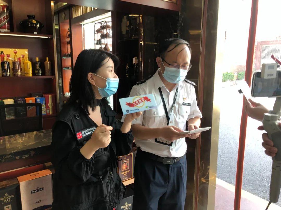 执法人员兵分两路对位于宝安区海雅缤纷城商业区附近的宝丰礼品商行和明生商场开展检查,主要检查了两家商行的经营资格和索证索票制度落实情况,以及陈列区、仓储区的酒类标签标识情况。