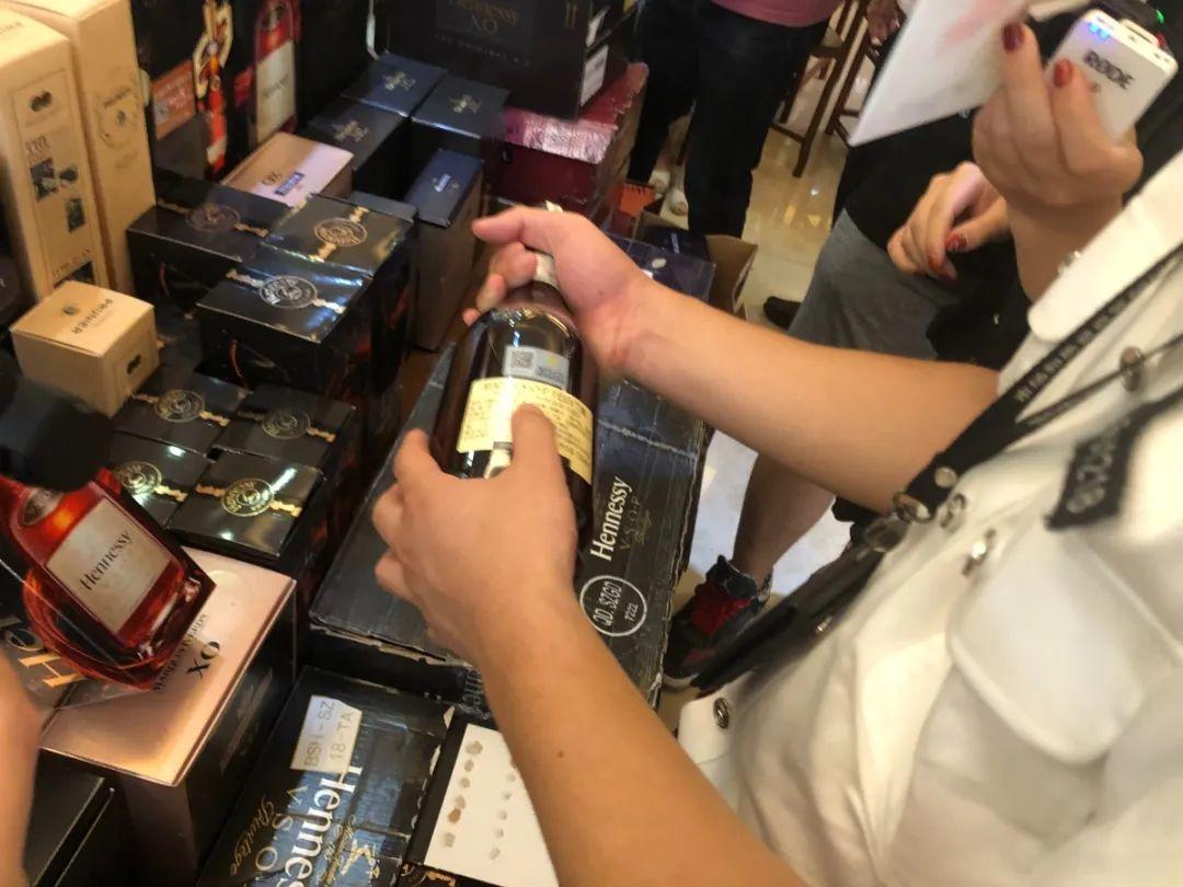 △执法人员对没有中文标签的酒进行数量统计和拍照取证