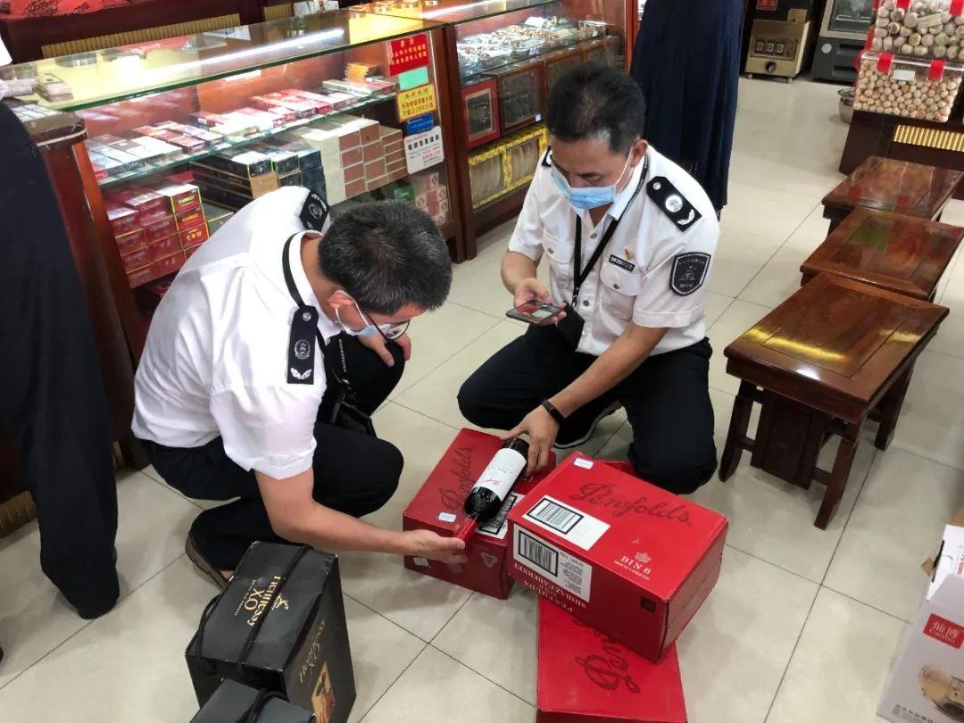 △执法人员现场对该酒行的国产酒进行抽查,未检查出问题