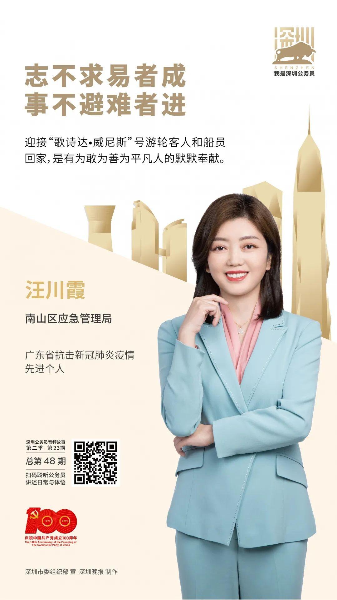 本期讲述南山区应急管理局汪川霞的故事。疫情发生后,她主动请缨、披甲上阵,连续坚守奋战在抗疫一线350余天,两次参与了“歌诗达•威尼斯”号邮轮应急处置工作。欢迎大家扫码收听她的音频故事。