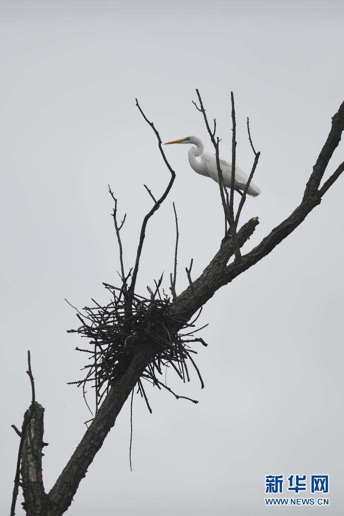 随着天气转暖,大批鹭鸟飞到湖南益阳沅江市的南洞庭湖区筑巢、栖息、繁殖。